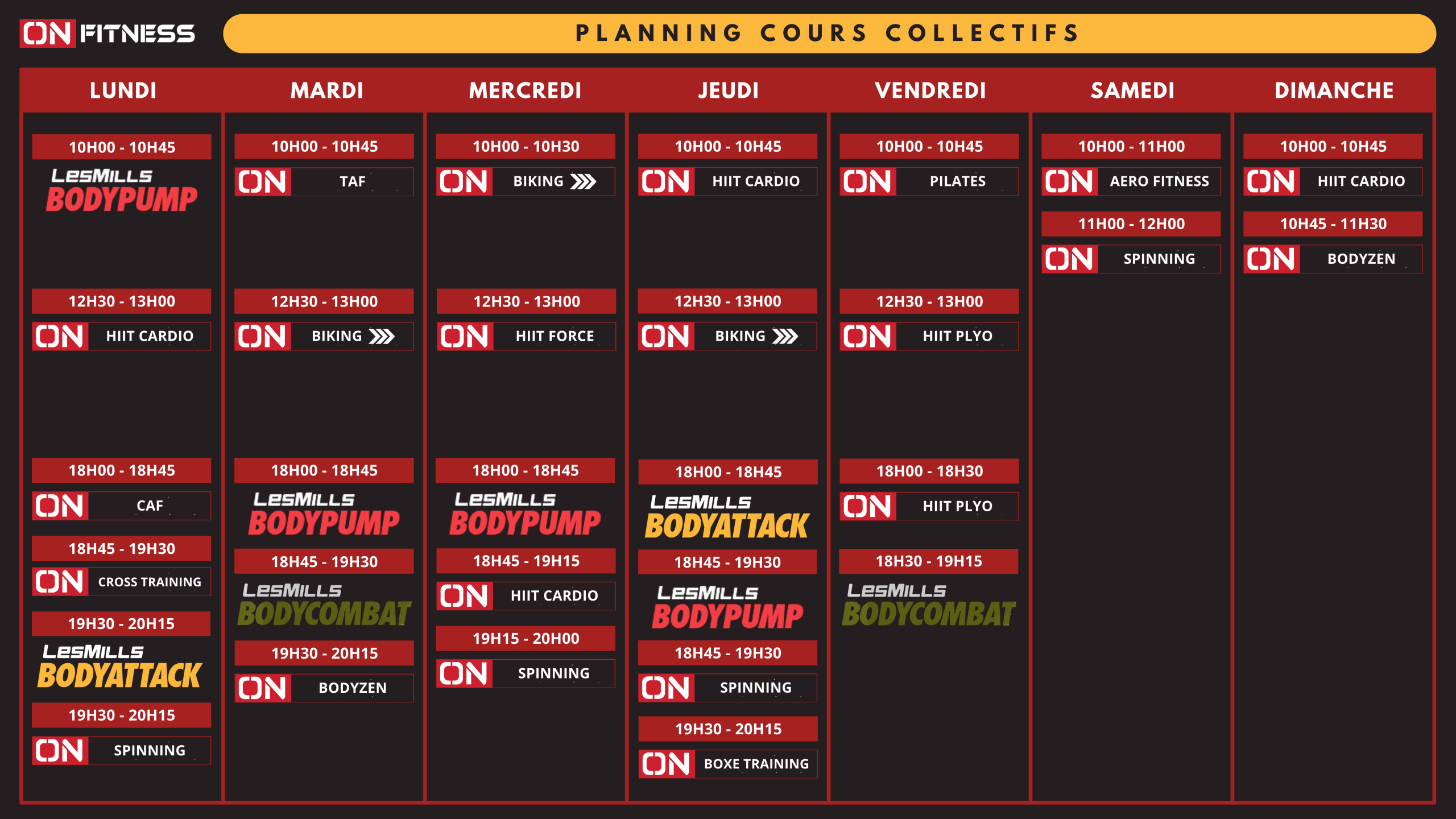 Les séances d'entraînement chez On fitness sont des séances d'exercice structurées qui se déroulent dans un centre de remise en forme entièrement équipé.